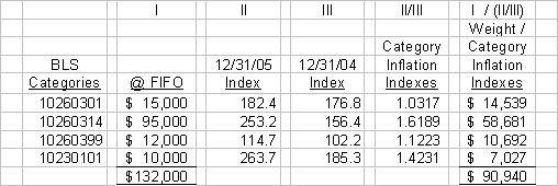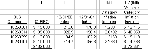 the sum of the FIFO values, $132,000, by the “sum of weight/category inflation