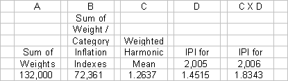 when totaled, is the value, “Sum of (Weight/Category Inflation Index)”. The computation is illustrated below: